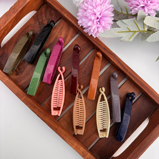 "Everyday Elegance Banana Clips" The perfect marriage of function and style. These sleek banana clips come in versatile colorways – that complement every hair color and outfit.
