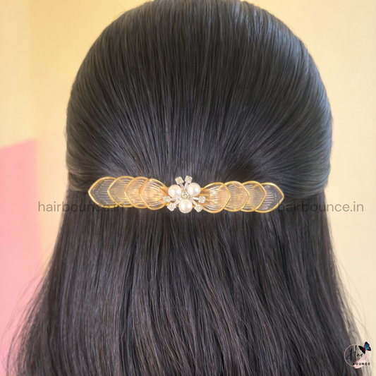 Gold-Edge Floral Pearl Barrette Hair Clip