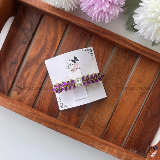 Royal Amethyst Leaf Crystal Barrette Hair Clip