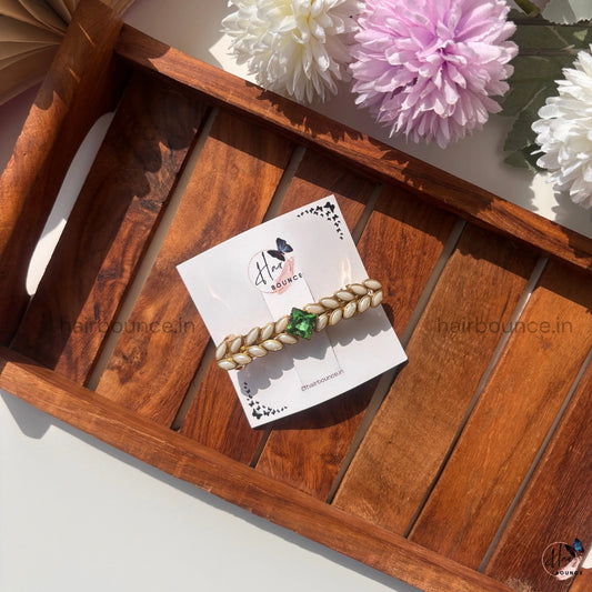 To keep your Kundan hair clips sparkling, avoid direct contact with hairsprays, perfumes, or water. Wipe them gently with a soft microfiber cloth after use and store them in the airtight pouches provided by HairBounce to prevent tarnishing.