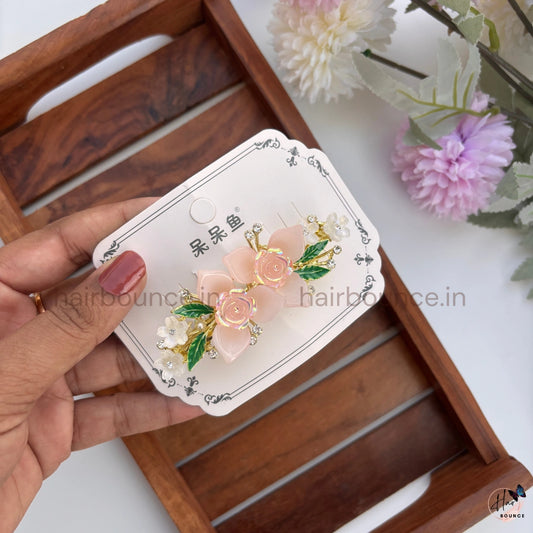 Rose Garden Pearl Hair Barrette – Elegant Floral Clip