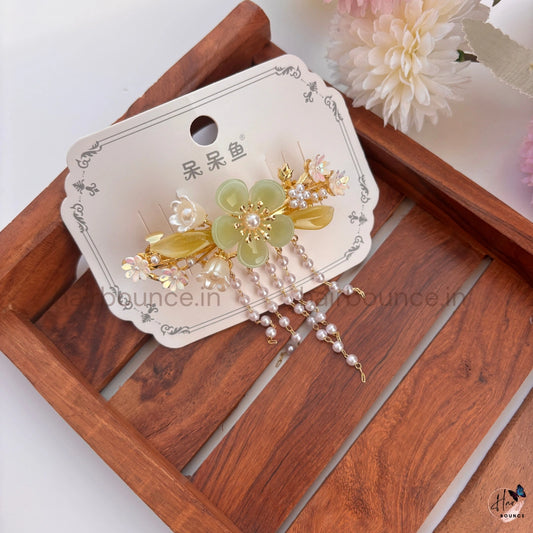 Premium Stoned Flower Pearl Center Clip
