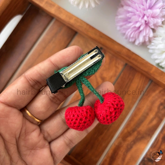 Cute Cherry Crochet Hair Clip – Handmade Fruit Hair Barrette for Girls & Women