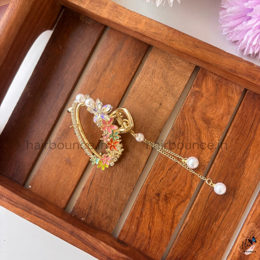 Garden Heart Bloom Crystal Bar Clip