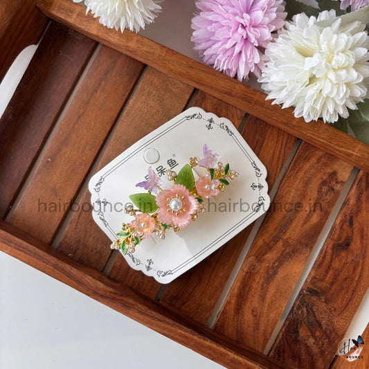 Pastel Garden Floral Pearl Center Clip