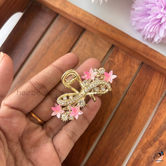 Royal Crystal Floral Bow Metal Hair Claw – Medium