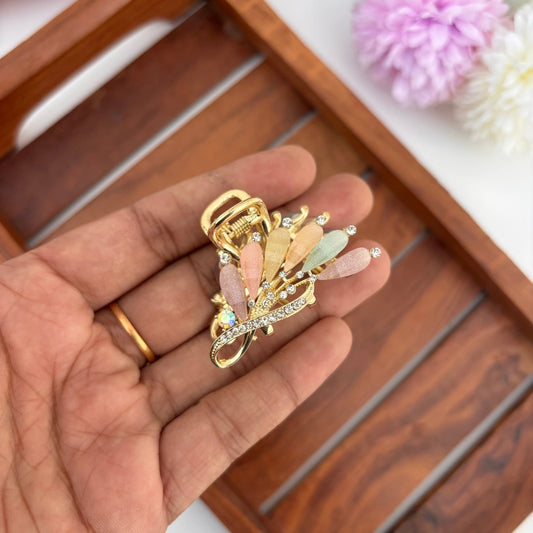 Premium Metal Triple Butterfly Hair Claw - Medium