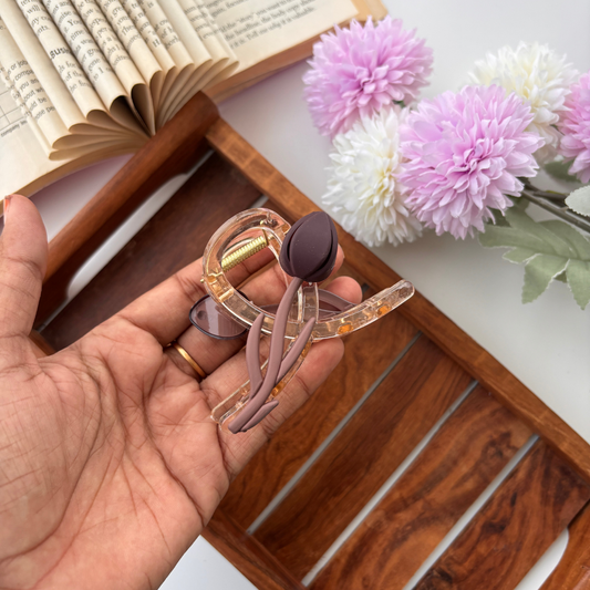 Matte Finish Outline Lilly Flower Hair Claw - Medium