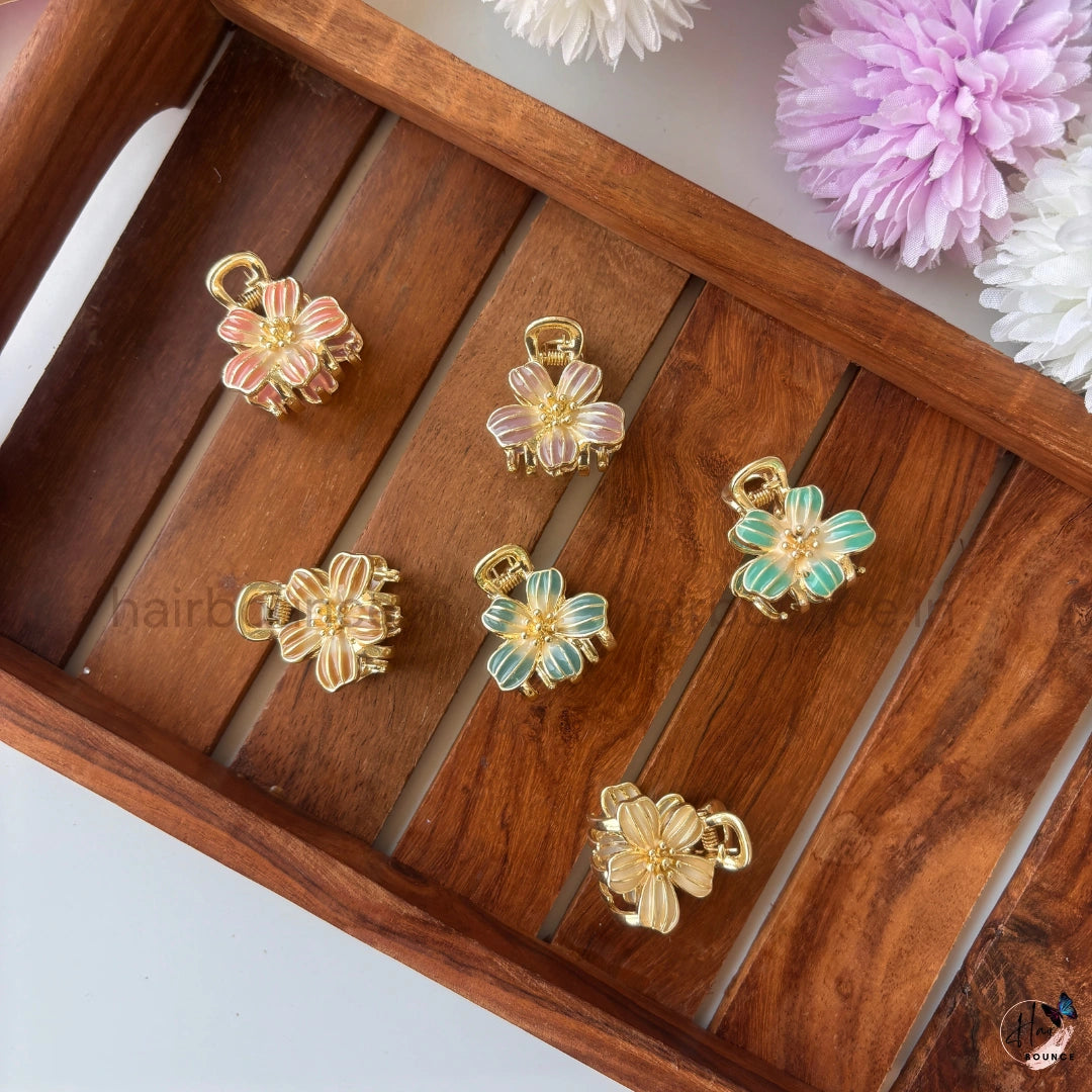 Enhance your hairstyle with elegant floral charm using our Aurora Daisy Premium Metal  Hair Claw, beautifully crafted with a luxurious gold-tone metal body, glossy enamel daisy petals, and a delicate crystal center. Inspired by blooming flowers, this premium mini hair claw adds a sophisticated and feminine touch to any look.