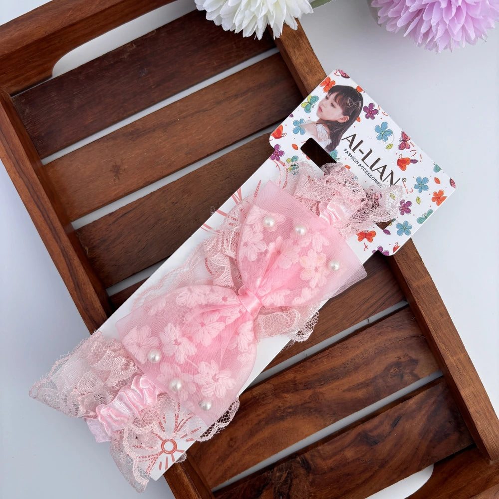 "A sweet blend of lace, bow, and floral charm—this newborn headband is crafted for softness and style. Perfect for delicate heads and picture-perfect moments."