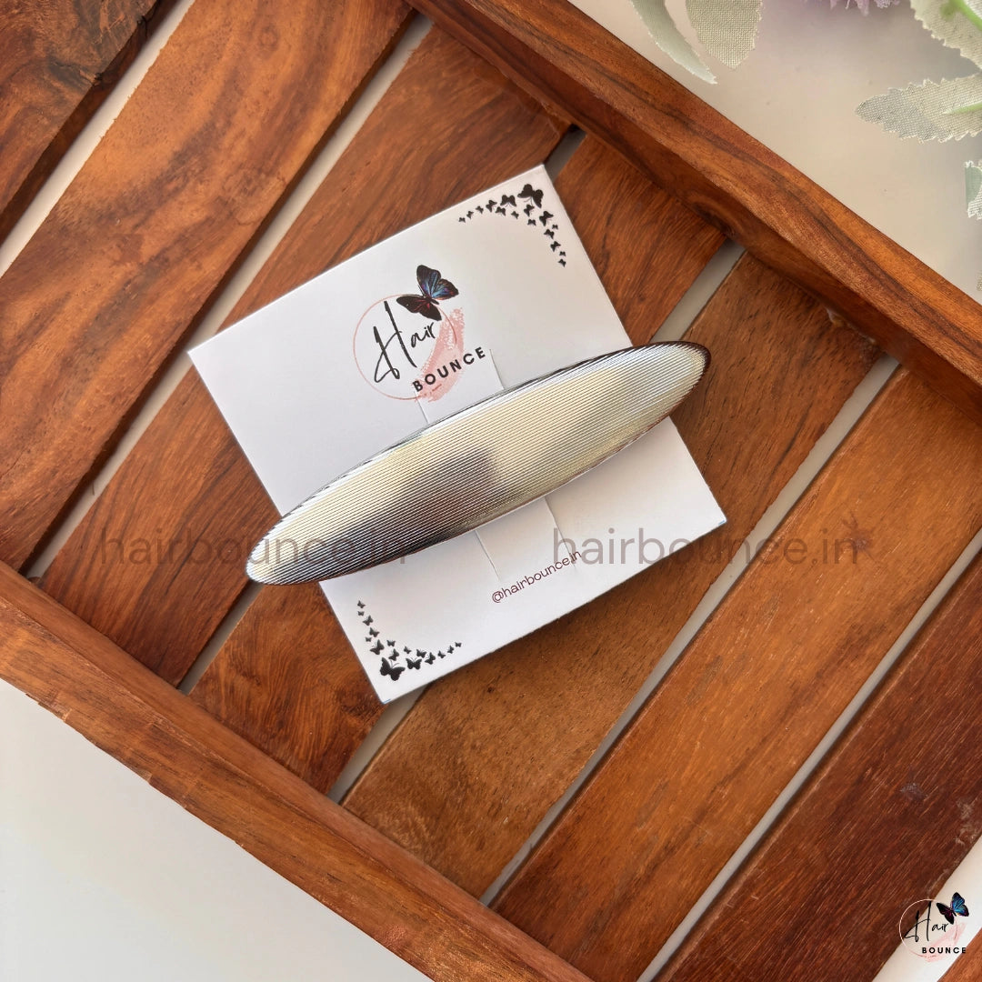 Celestia Micro-Rib Metallic Oval Barrette – Refined Luxe Collection