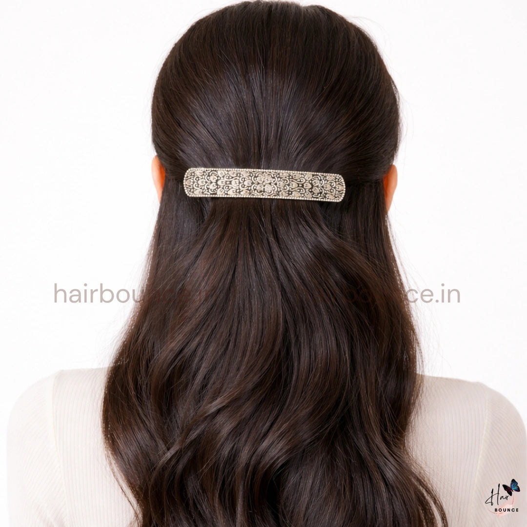 Its sturdy clasp ensures a secure and comfortable hold, making it perfect for both everyday wear and special occasions. Whether paired with traditional outfits or modern looks, this elegant statement barrette enhances your style effortlessly.