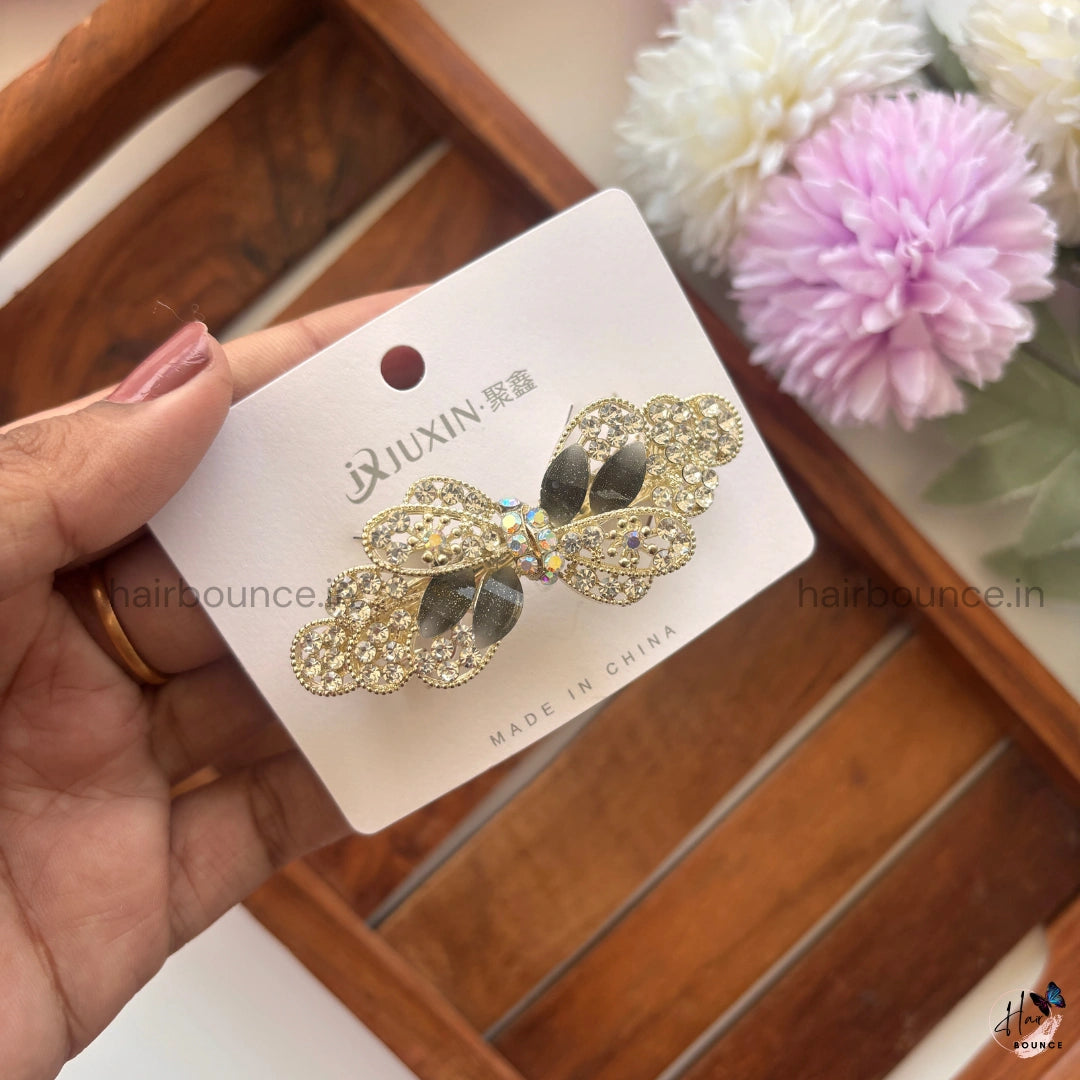 Elevate your hairstyle with the delicate charm of the Crystal Bloom Butterfly Bow Center Clip. Crafted in a graceful butterfly-bow silhouette, this piece features finely set shimmering crystals paired with soft pastel accents at the center for a refined, feminine finish.