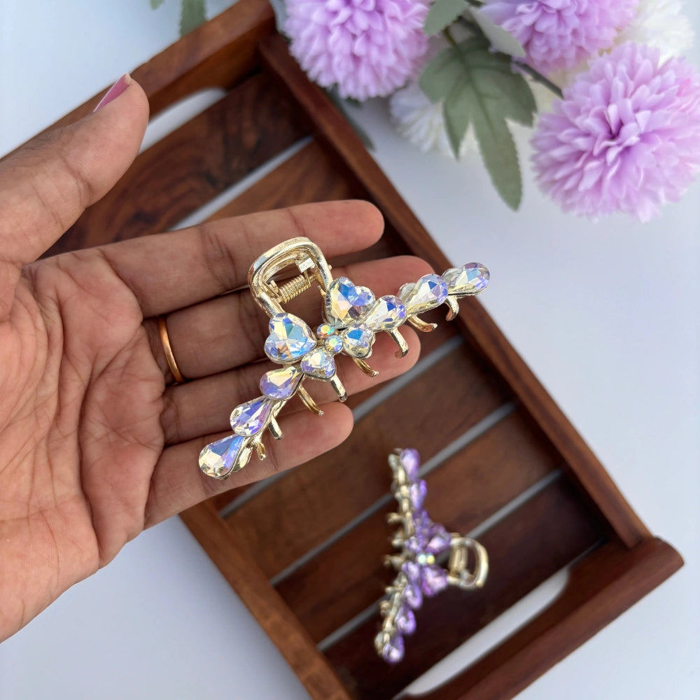 Graceful and eye-catching, this large hair claw features a looped butterfly design with shimmering crystal details. Perfect for adding a touch of elegance to your hairstyle.