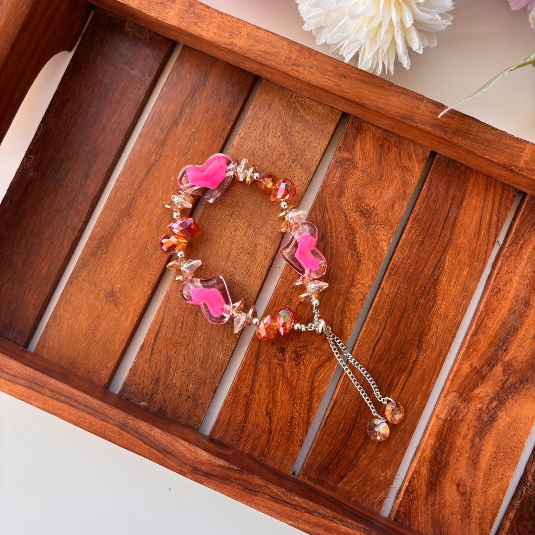 Add a touch of sparkle and romance to your style with this Crystal Heart Charm Bracelet. Featuring shimmering glass beads paired with colorful heart charms, each bracelet reflects light beautifully for an enchanting look. Designed with an adjustable chain, it offers a perfect fit for any wrist and is ideal for casual wear, gifting, or special occasions. ✨💖