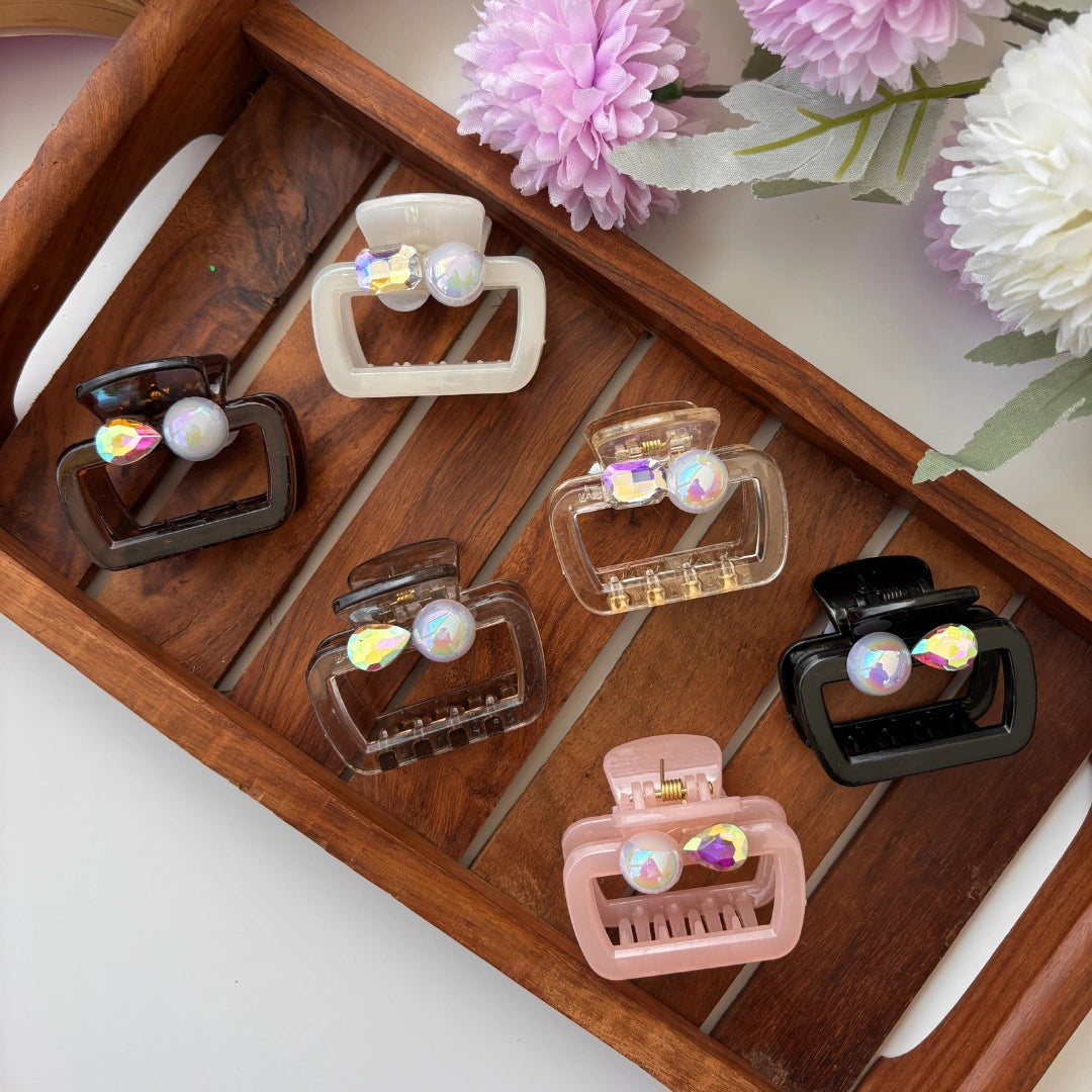 Add effortless elegance to any hairstyle with our Crystal Pearl Rectangle Hair Claw (Medium). Designed with a stylish open-rectangle frame and finished with a stunning iridescent pearl + crystal charm, this claw brings a soft, luxurious glow to your everyday look.