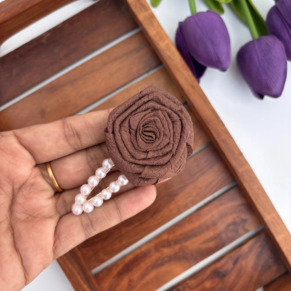 A delicate blend of charm and elegance, this clip features a budding floral design paired with a radiant pearl center. Ideal for adding a graceful accent to casual or festive hairstyles. Sturdy alligator grip ensures a secure and stylish hold all day.