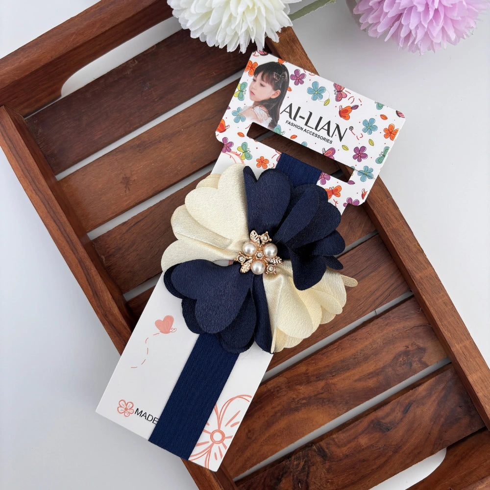 "Two tones, twice the charm! This dual colour flower headband is soft, stretchy, and adds a pop of elegance to your newborn’s adorable look."