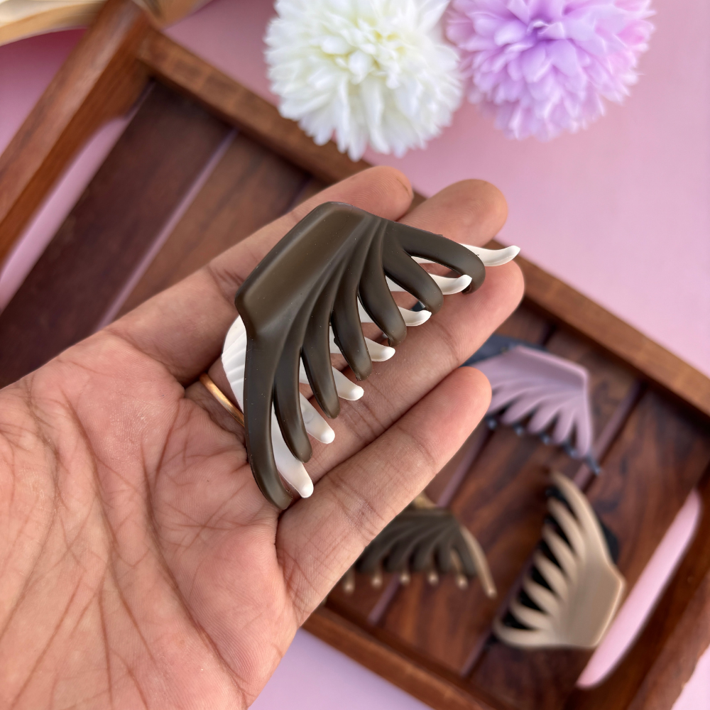 Designed with bold dual tones and clean lined detailing, this medium-sized hair claw offers a stylish and secure hold. Perfect for adding structure and flair to your everyday hairstyles.
