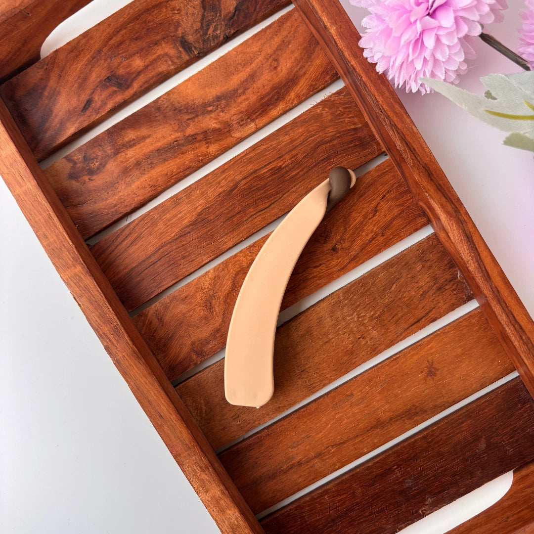 A sleek and stylish banana clip featuring a smooth curved design with a two-tone color finish. Perfect for effortlessly securing and styling your hair with elegance.