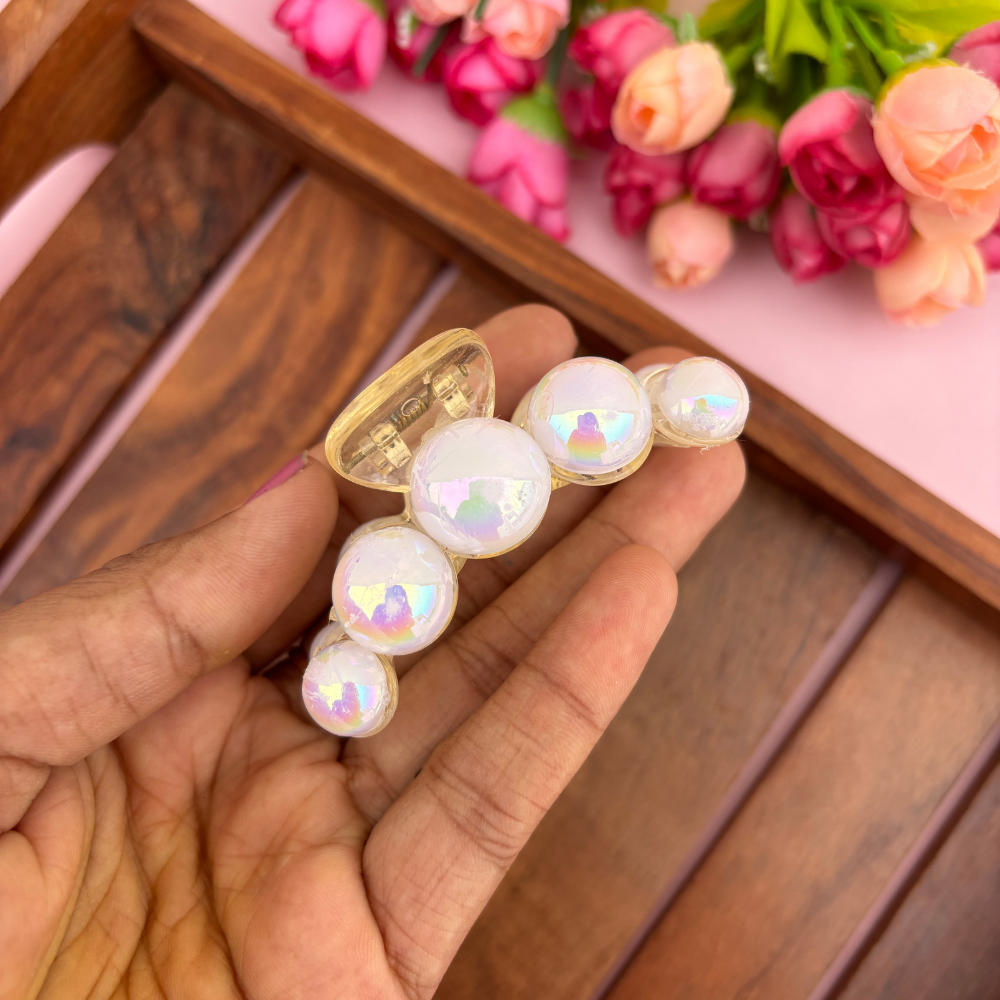 A classy blend of simplicity and shine—this medium hair claw features five radiant pearls that add a touch of luxury to your everyday look. Strong grip meets soft elegance, perfect for half-up styles or casual buns.
