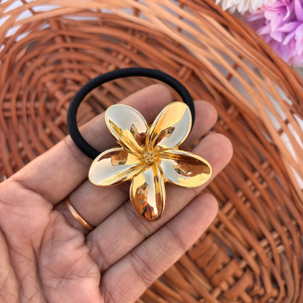 Petal-shaped metal cuff that hides your hair tie for a polished pony.