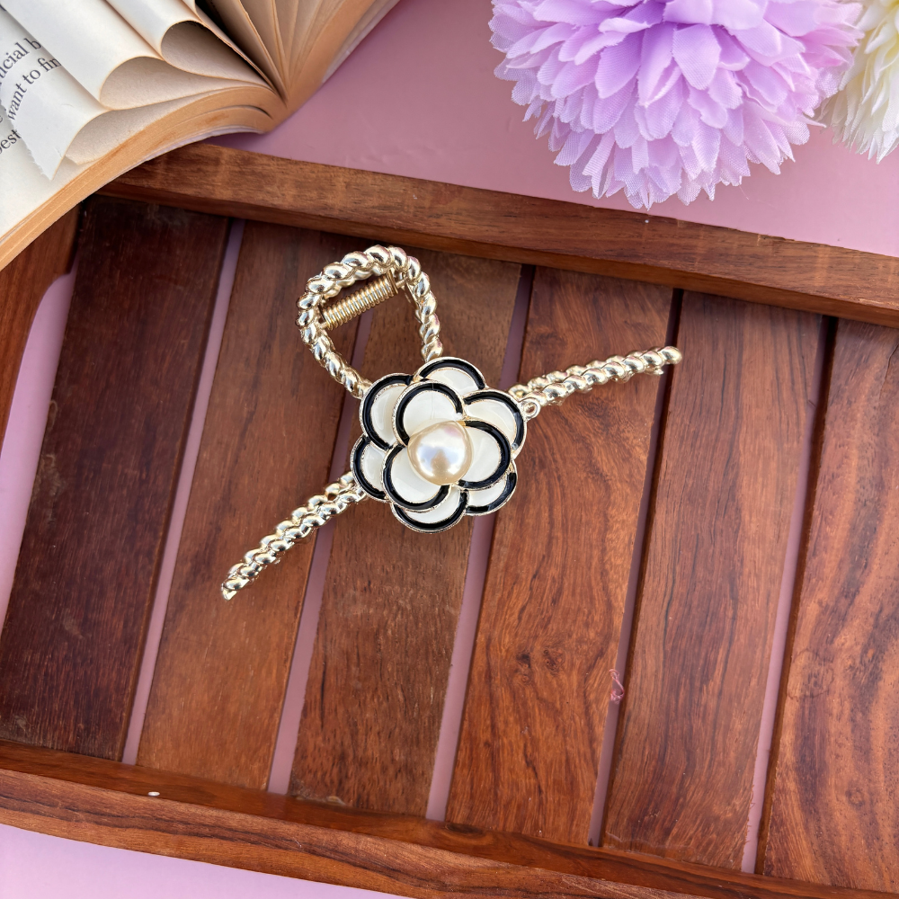 Elegant and timeless, this large hair claw features a blooming flower accented with soft pearl details — perfect for elevating your everyday or festive hairstyle.