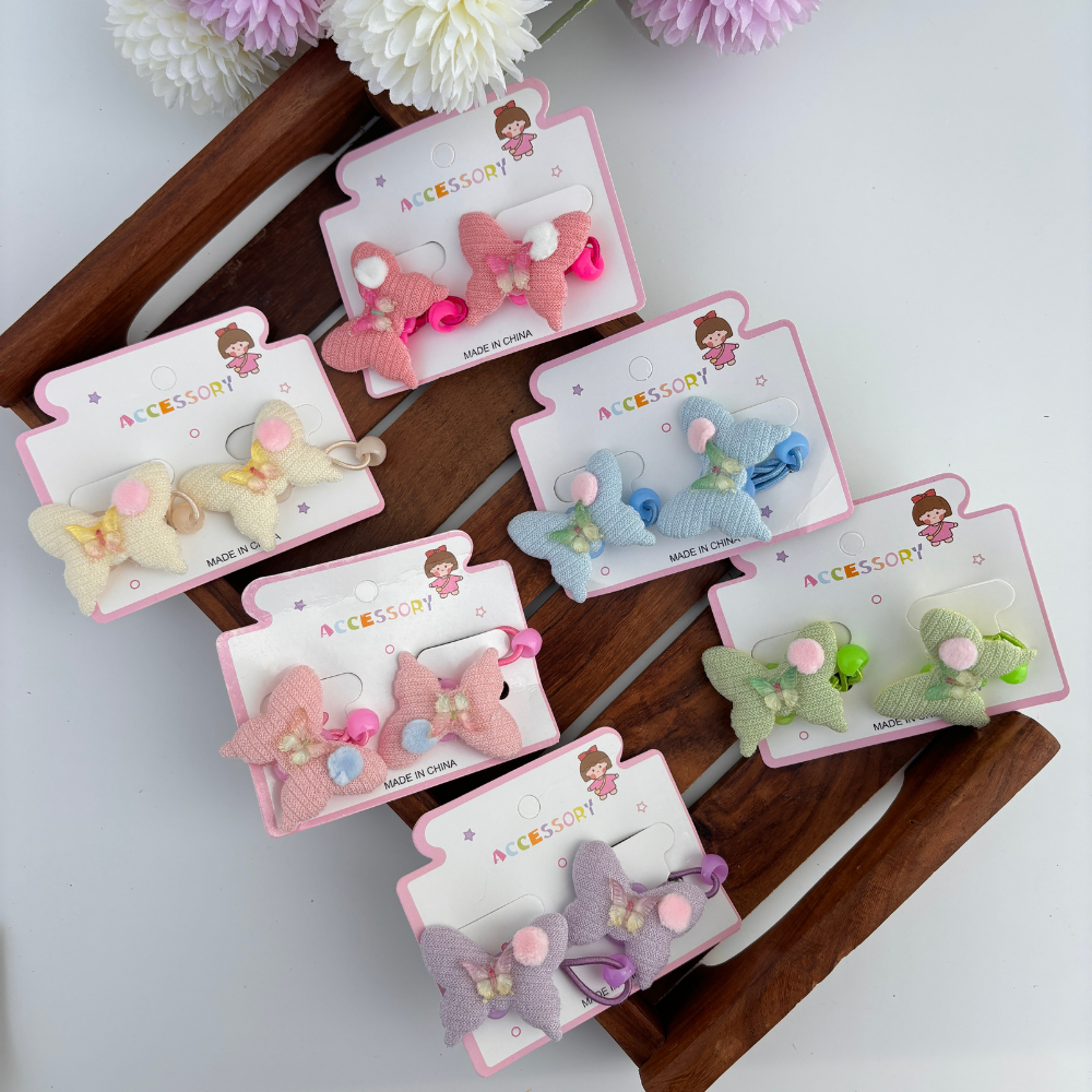 Adorned with cute butterfly charms, these elastic bands add a fun, whimsical touch while keeping hair neatly in place — perfect for everyday wear or dress-up days!