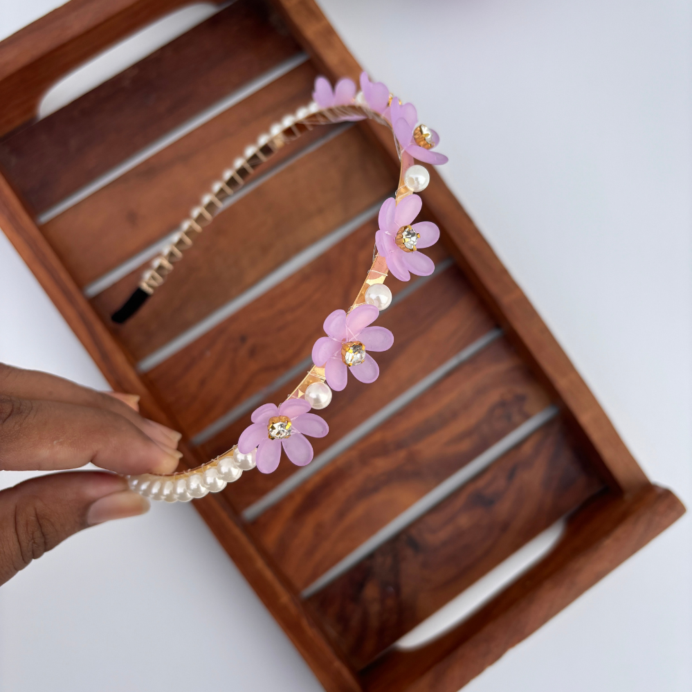 Featuring soft frosted daisy flowers with pearl and crystal accents, these pastel hairbands are perfect for adding a touch of spring charm. Lightweight and pretty—ideal for birthdays, casual outings, or playful looks!