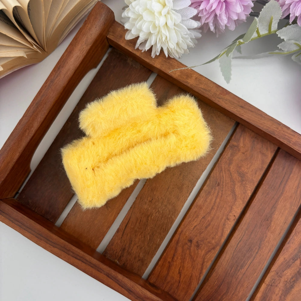 A soft, fluffy claw clip with a cozy fur finish that blends comfort and style.