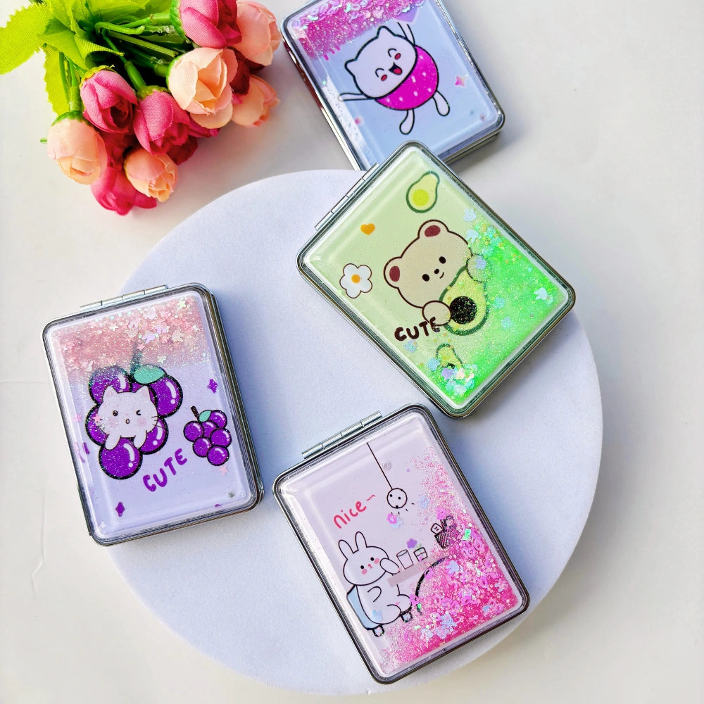 Add a touch of sparkle to your essentials with the Glitter Foldable Packet Mirror. This compact, rectangular mirror is perfect for on-the-go touch-ups and fits easily in your bag.