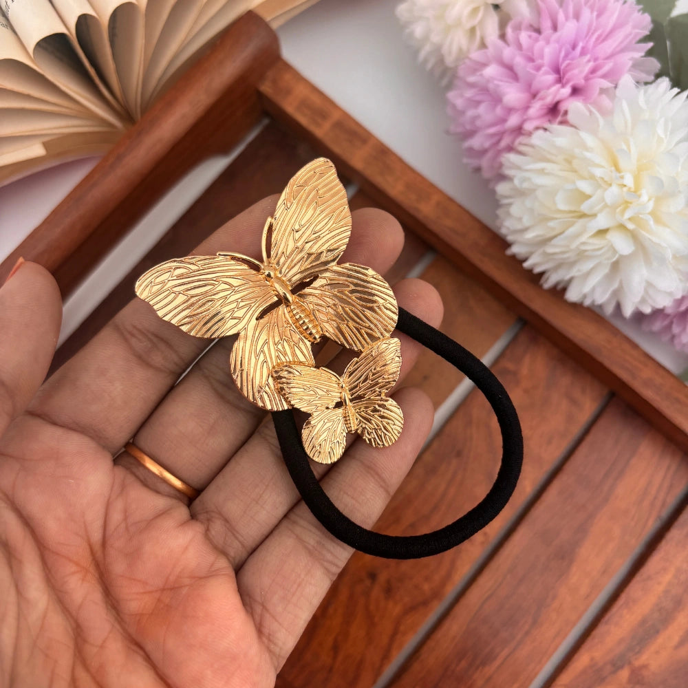 ✨ Adorn your hair with this elegant golden butterfly hair tie, crafted with intricate detailing.