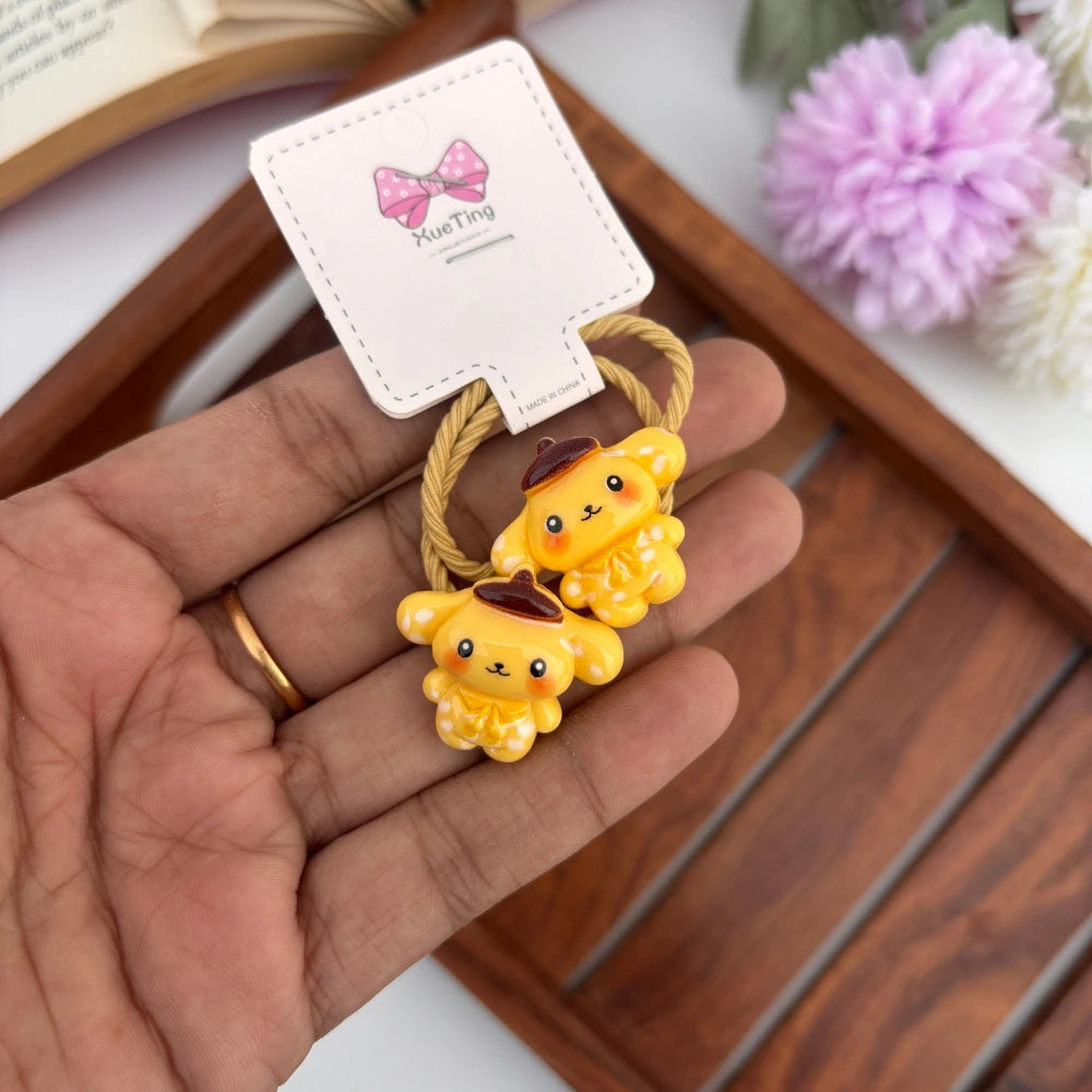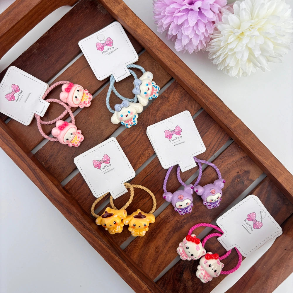 A cute collection of hair ties featuring kawaii-inspired characters like bears, bunnies, and dolls in pastel colors. Soft, stretchable elastics make them perfect for kids while adding a playful charm to any hairstyle.