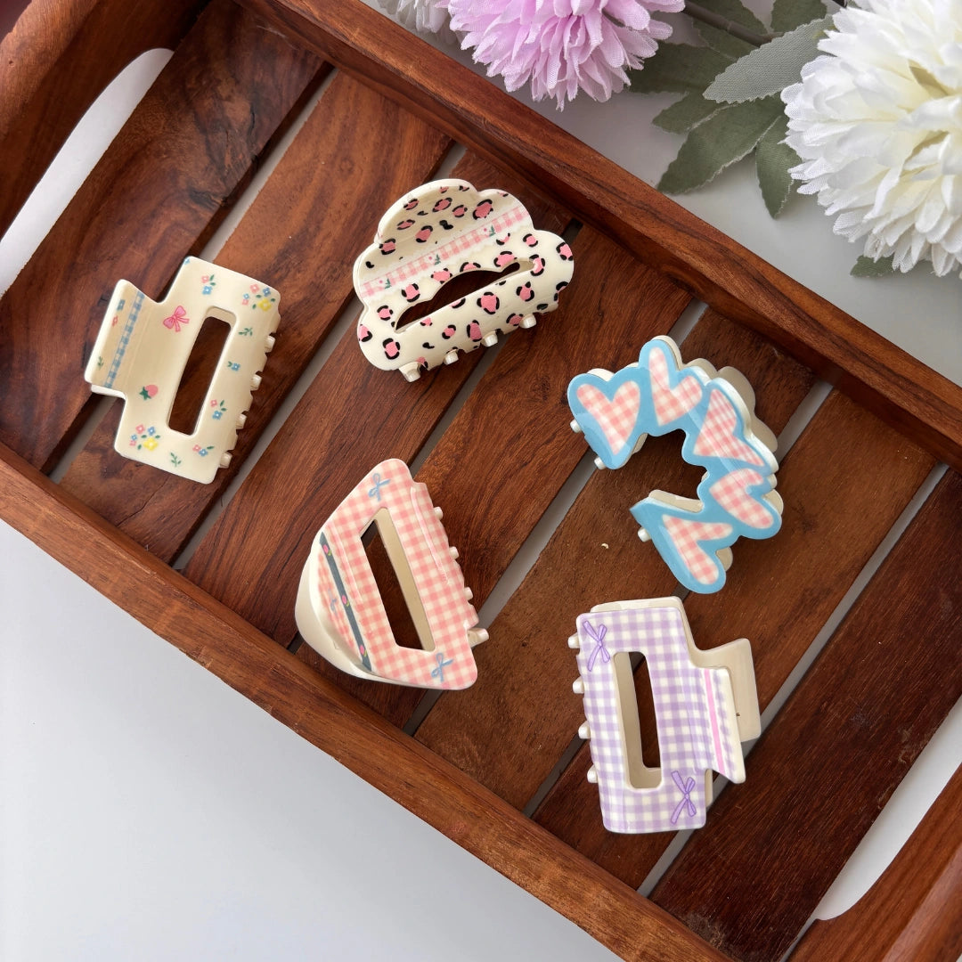 Playful, chic, and full of personality! ๐Ÿ’• The Korean Printed Hair Claw โ€“ Medium comes in adorable pastel designs โ€” from gingham checks to florals and hearts โ€” to match your every mood. Lightweight yet sturdy, itโ€™s your go-to clip for effortless hairstyles.