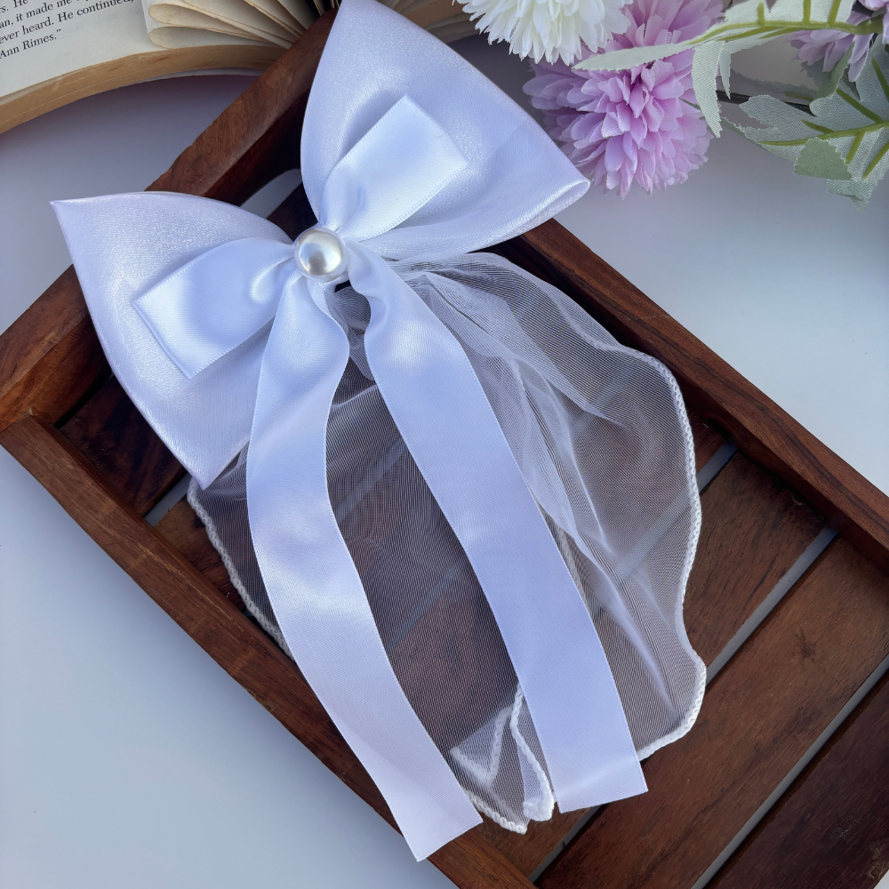 A delicate bow crafted with soft lace and finished with a sleek ribbon center. Lightweight and elegant, it’s the perfect accessory to add a touch of charm to casual looks, parties, or festive outfits.
