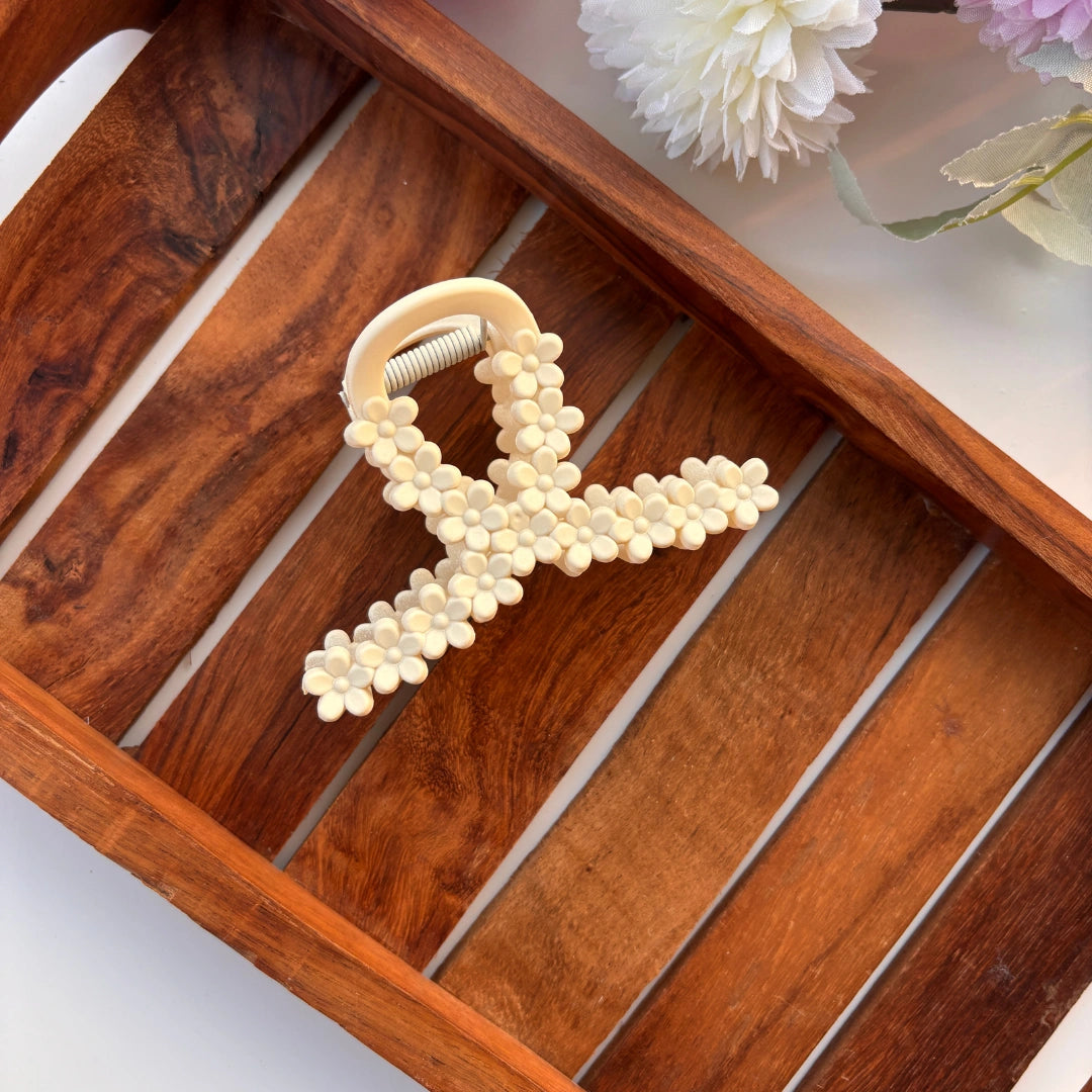 Its sturdy grip and large size make it perfect for thick or long hair, while the pastel flower loops add a playful, charming touch to any look.