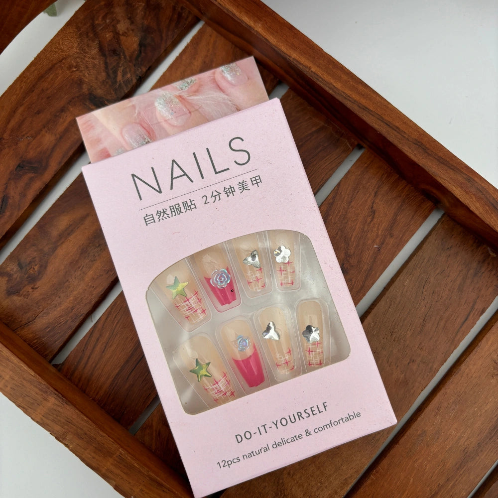 Get salon-style nails in minutes with this set of 12 press-on nails. Easy to apply, durable, and stylish—perfect for instant glam without the hassle.