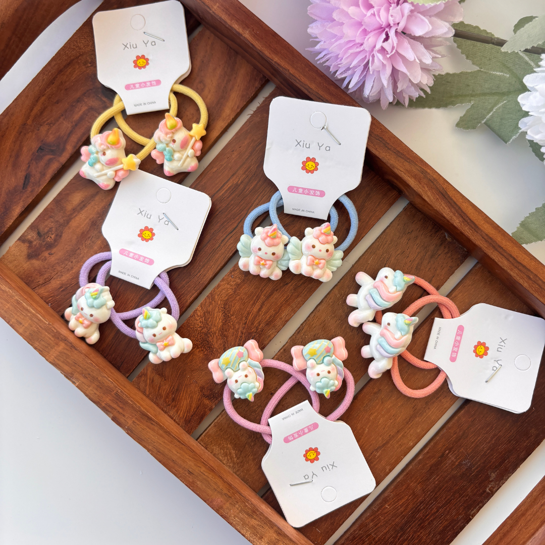 Each pair features pastel unicorns with adorable detailing — wings, stars, and rainbow manes — making every ponytail or braid feel like a fairytale moment. Perfect for playdates, parties, or just everyday magic!