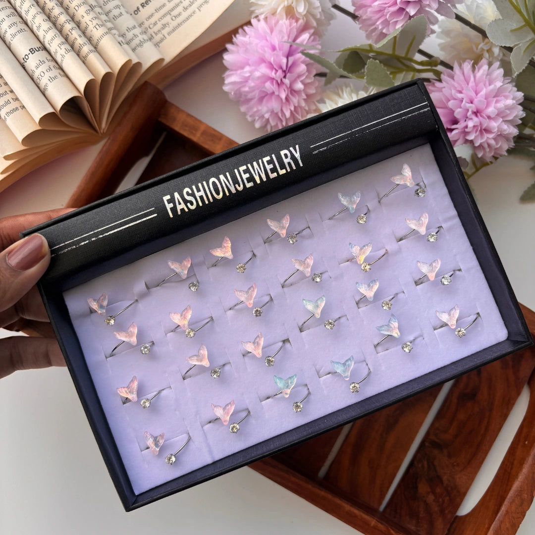A dreamy collection featuring pastel-toned fish tail rings alongside sparkling crystal solitaires. Lightweight and adjustable, these rings bring a touch of ocean-inspired elegance to your everyday style. Perfect for gifting, mix-and-match looks, or adding a whimsical charm to any outfit." 🧜♀️✨🌊