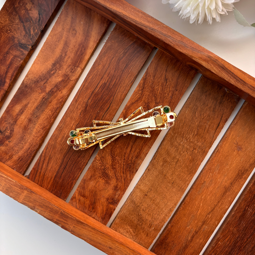 Available in assorted color variants, each clip features a golden base with rich gemstone accents that make every hairstyle shine.
