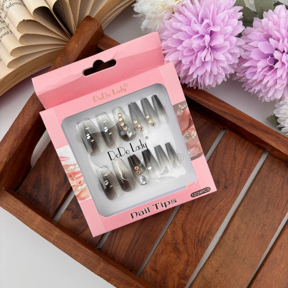 Get salon-style nails in minutes with this set of 12 press-on nails. Easy to apply, durable, and stylish—perfect for instant glam without the hassle.