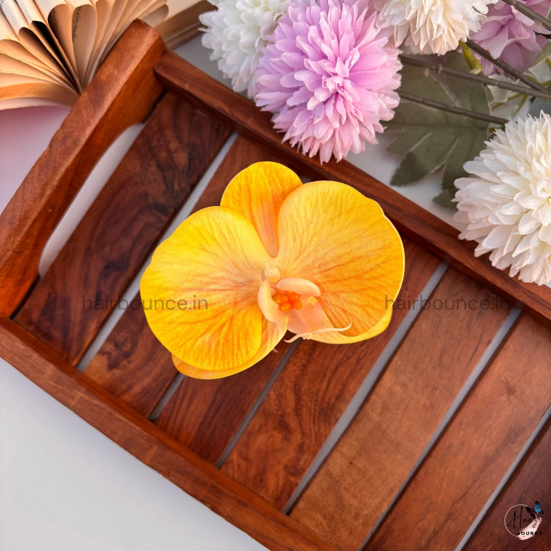 Add an elegant floral statement to your hairstyle with our Orchid Bloom Hair Claw – Luxe Floral Edition. Designed in a realistic orchid flower shape, this premium hair claw features soft petals, rich colour detailing, and a graceful finish that instantly elevates any look. Lightweight yet sturdy, it offers a strong grip while remaining gentle on hair, making it perfect for both everyday styling and special occasions.
