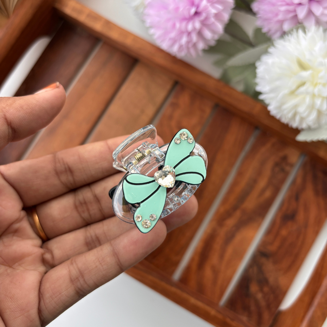 Soft curves meet elegant charm in our Oval Bow Hair Claw. Crafted with a glossy enamel bow and sparkling crystal centerpiece, this claw blends sophistication with a touch of sparkle. Perfect for elevating your everyday look or adding polish to party hairstyles.