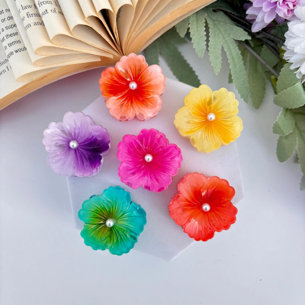 Beautiful hibiscus flower hair claws with a glossy finish and a pearl center for added elegance. Lightweight yet sturdy, they bring a fresh tropical charm to your hairstyles — perfect for both daily wear and festive looks.