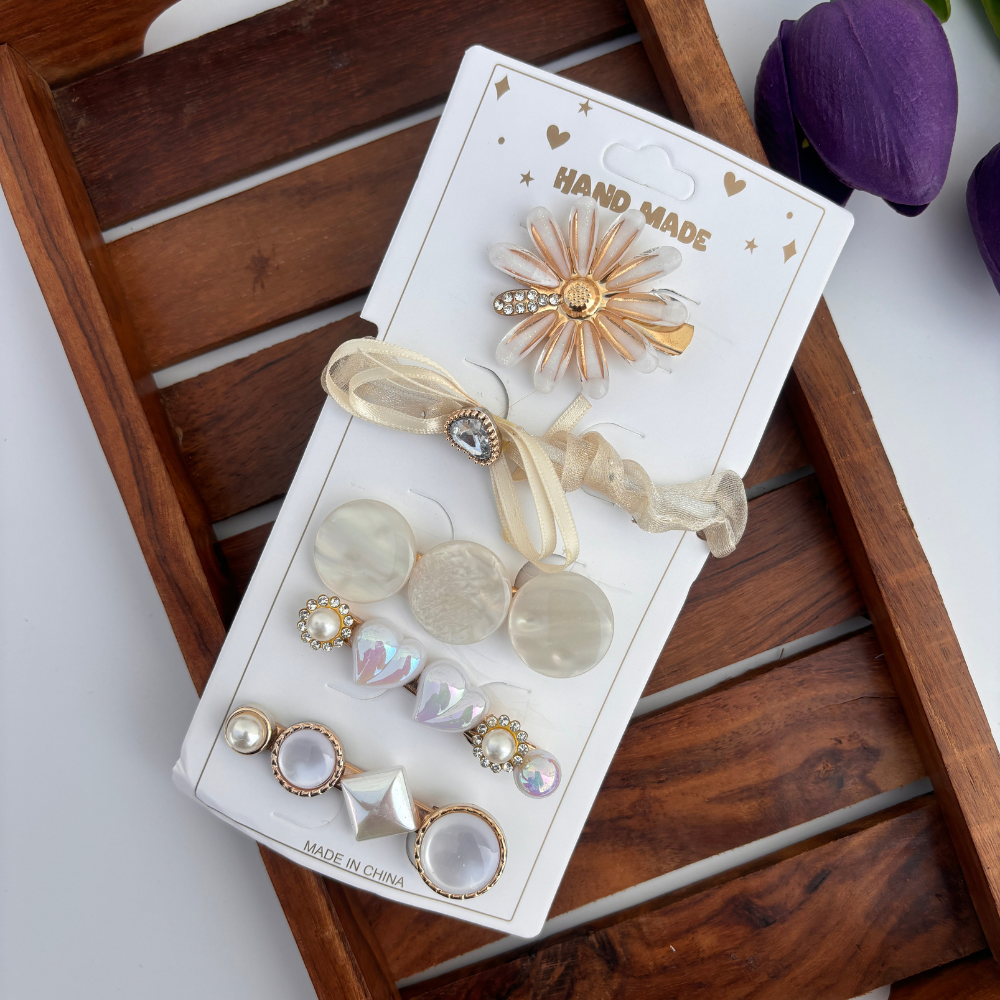 Pearl Glow Hair Set – 1 Scrunchie & 4 Clips