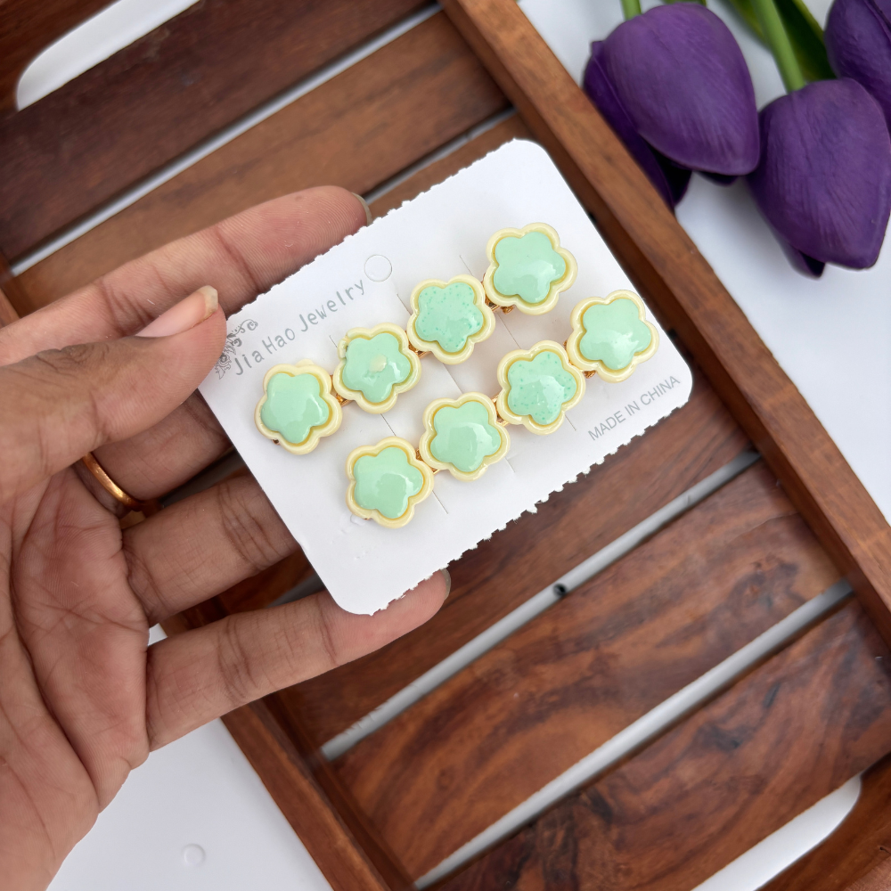 Adorable pastel flower-shaped clips in playful color combos — perfect for brightening up any hairstyle with a pop of cuteness. Great for everyday fun.