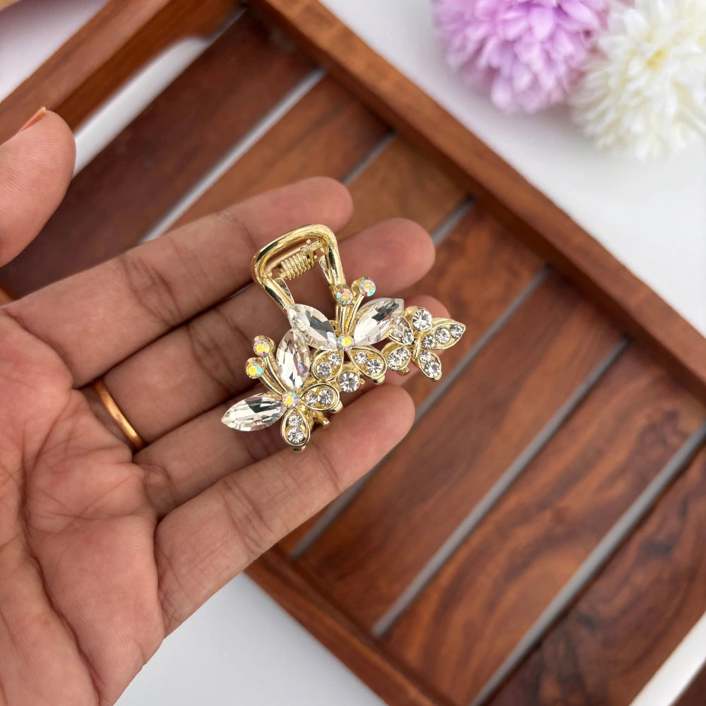 Premium Metal Triple Butterfly Hair Claw - Medium