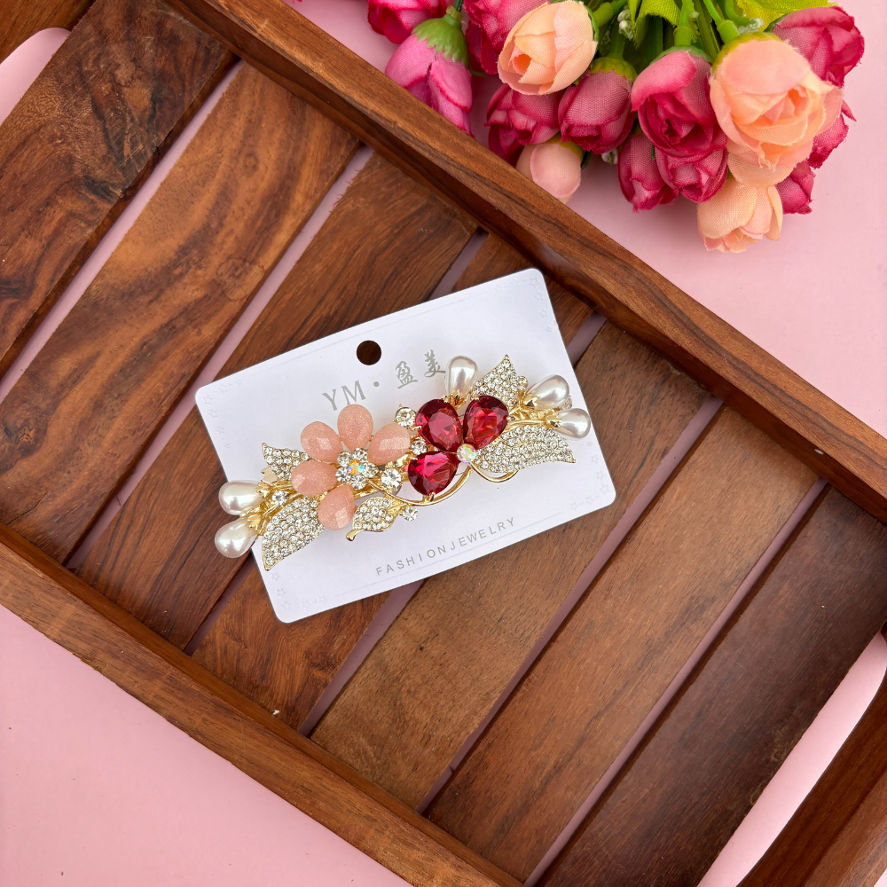 Delicately designed with a radiant flower and a lustrous pearl at its heart, this premium center clip adds a touch of timeless elegance. Ideal for graceful updos or soft everyday styles with a polished finish.