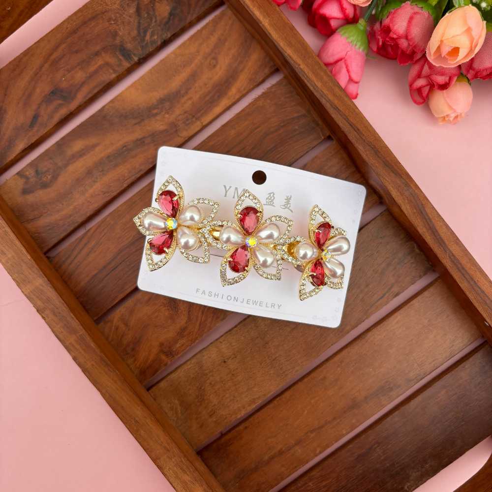 Featuring three delicate flowers accented with luminous pearls, this center clip brings timeless elegance to your hairstyle. Chic, graceful, and easy to wear—perfect for both everyday charm and special occasions.