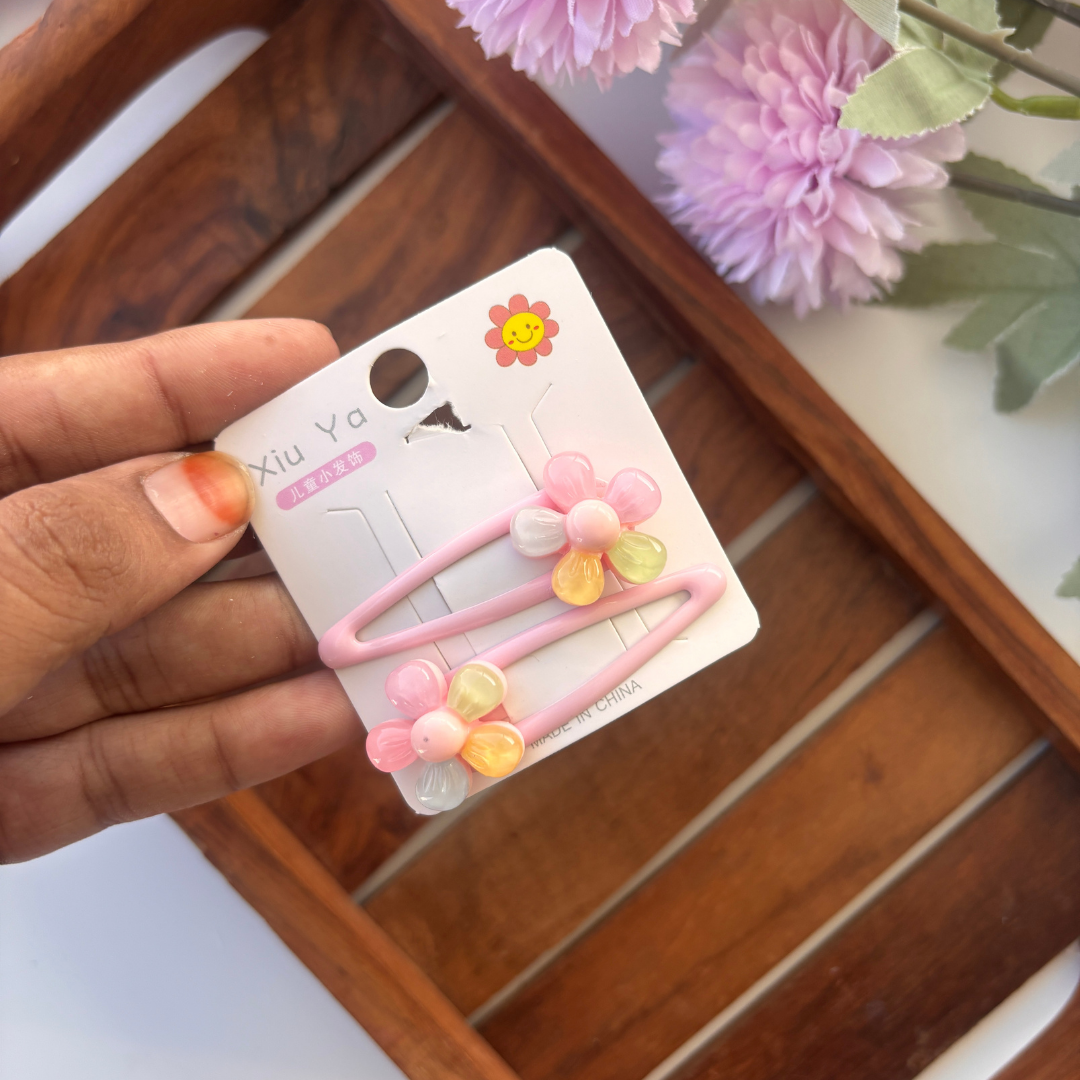 Each pair features cute pastel flower designs in soft rainbow hues — perfect for adding a pop of color to your little one’s hairstyle. Whether it’s for school, parties, or playtime, these clips bring instant joy and charm!